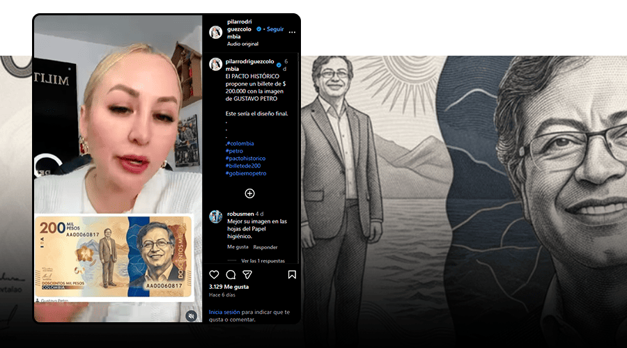 En redes sociales se mueve la imagen de un supuesto nuevo billete por valor de doscientos mil pesos ($200.000) que tiene el rostro de Gustavo Petro. Las publicaciones aseguran que la nueva denominación está siendo impulsada por el Pacto Histórico.
