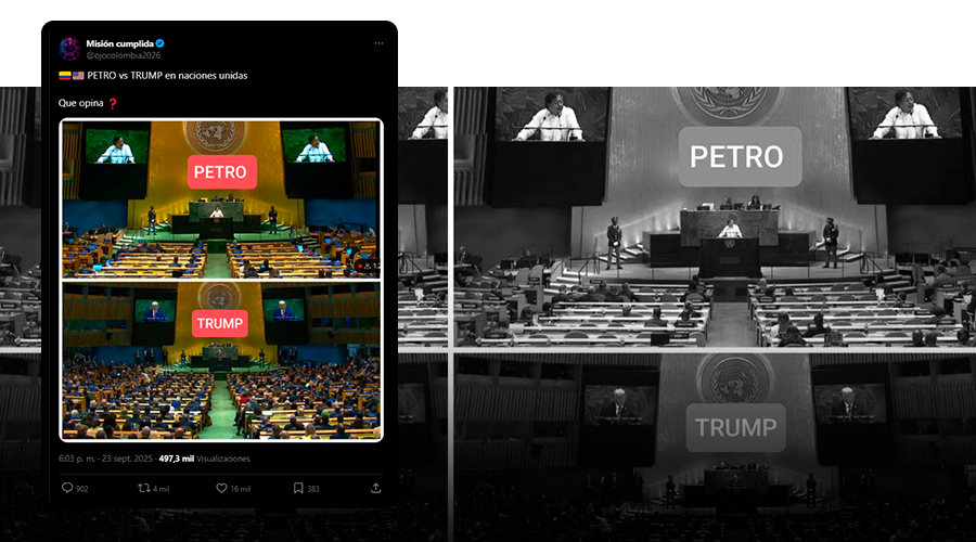 Tras la reciente Asamblea General de las Naciones Unidas (ONU), circulan imágenes en las que se compara la asistencia de las delegaciones internacionales durante los discursos del presidente de Colombia, Gustavo Petro, y de su homólogo estadounidense, Donald Trump, que son “verdaderas pero…”, pues omiten el contexto de cada una.