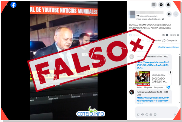 El 25 de enero de 2026 comenzó a circular un contenido en Facebook que asegura que el presidente de Estados Unidos, Donald Trump, dio la orden para detener inmediatamente a Diosdado Cabello, ministro del Interior y Justicia de Venezuela.