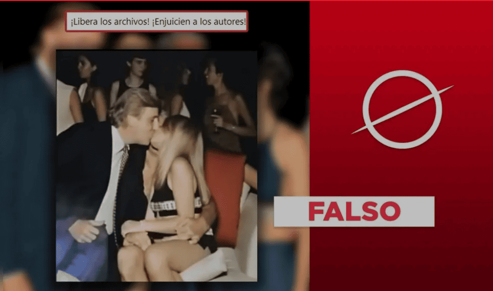 Aunque aún existen denuncias activas e incluso veredictos de tribunales que acusan a Donald Trump, aún se siguen propagando varias teorías conspirativas. Una de ellas es esta imagen y video que supuestamente muestra al magnate y presidente de los Estados Unidos besándose con una menor de edad. No obstante, se trata de un bulo basado en otro bulo.