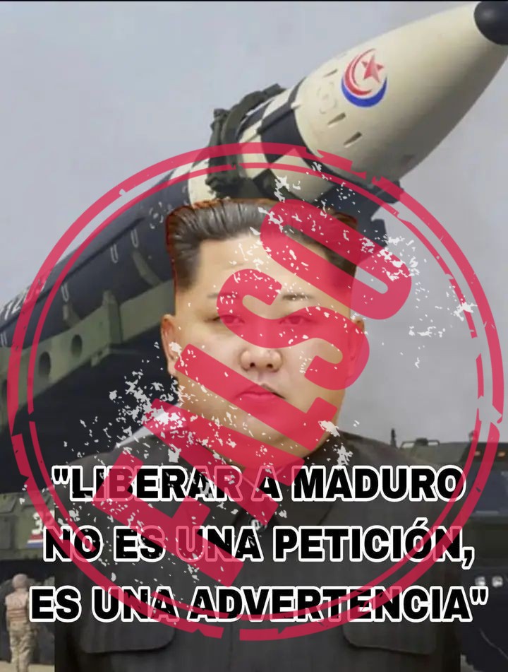 Una falsa atribución de declaraciones señala al dictador de Corea del Norte, Kim Jong-un, de haber amenazado a Estados Unidos tras la incursión militar del 3 de enero de 2026 en Venezuela, que resultó en la detención del entonces mandatario del país suramericano, Nicolás Maduro, junto a su esposa y asesora, Cilia Flores.
