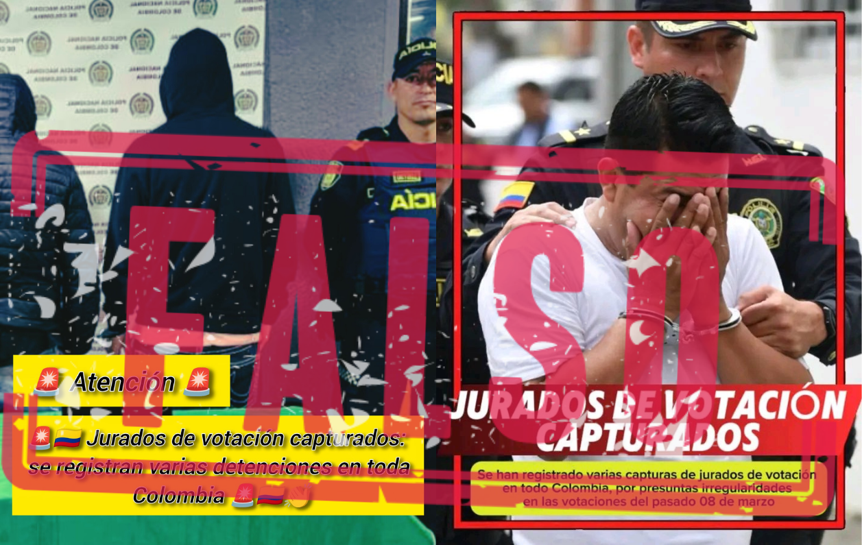 Distintas publicaciones falsas aseguran que hubo una supuesta “ola de capturas” de jurados de votación implicados en fraude electoral en las legislativas del 8 de marzo por todo el país.