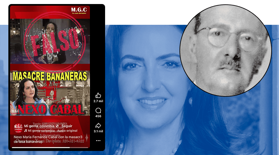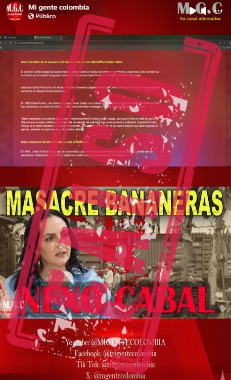 ‘Mi Gente Colombia’, una plataforma de propaganda afín al gobierno de Gustavo Petro, publicó un texto en su blog, en YouTube y en su página de Facebook, en el que establece una falsa relación entre un familiar de la senadora opositora María Fernanda Cabal y la masacre de las Bananeras, ocurrida en 1928: