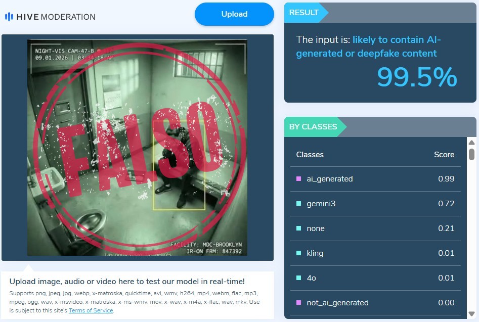 Finalmente, Hive Moderation arrojó un 99,5% de certeza sobre el uso de inteligencia artificial, identificando específicamente la tecnología Gemini 3 de Google con una probabilidad del 72%.