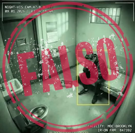 Aunque algunas publicaciones en plataformas digitales aseguran que la imagen es una “filtración intencional” de las autoridades estadounidenses o que fue publicada por ellas, no existen fuentes confiables que respalden esta afirmación. Además, nuestros colegas de Efecto Cocuyo encontraron que la normativa oficial de las cárceles federales en ese país, y específicamente del MDC Brooklyn, prohíbe la grabación o fotografía de reclusos sin su consentimiento expreso y por escrito.