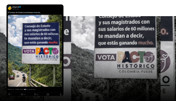 La pieza fue publicada por primera vez el 7 de febrero en la cuenta de X ‘Misión Cumplida’ (@ojocolombia2026), desinformadora frecuente. Minutos después, fue replicada por el usuario Argiro Castaño (@ArgiroCasta888). Entre los dos y alrededor de 200 publicaciones en Facebook, suman al menos 1,5 millones de visualizaciones.