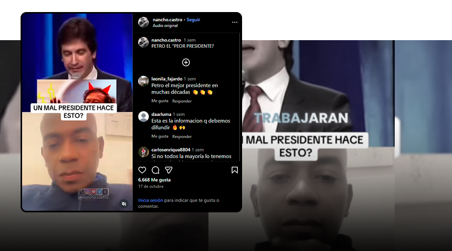 Un video falso publicado en TikTok @bolivarrevolucionario, muestra al predicador cristiano argentino Dante Gebel dando un aparente discurso que destaca supuestos logros del gobierno colombiano y denigra a la oposición.