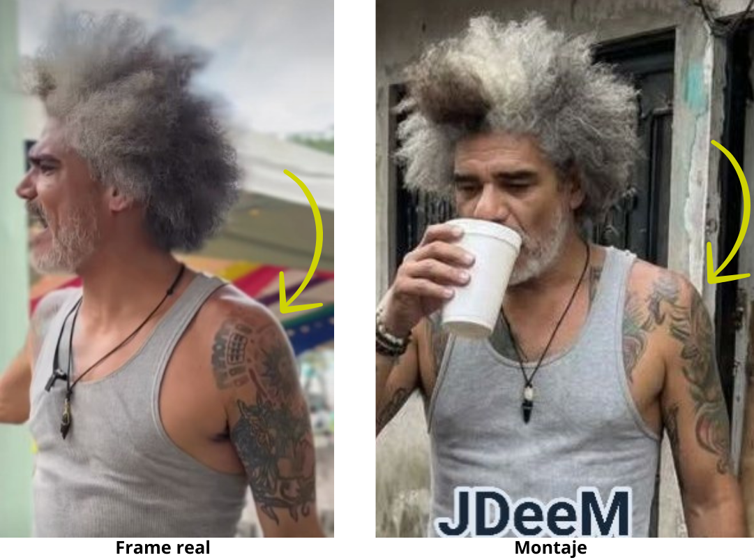 Sin embargo, comparando este último metraje, se evidencia que en la supuesta imagen con Petro los tatuajes de su hombro izquierdo son distintos a los que tiene en realidad.