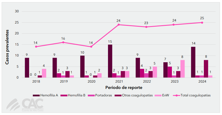 En Colombia, la Cuenta de Alto Costo (CAC) es la encargada de hacer seguimiento a las enfermedades como la hemofilia que implican inversiones importantes al sistema de salud. Según las cifras más recientes, en 2024 se reportaron 25 muertes por coagulopatías, y 15 de esas fueron por hemofilia A y B.