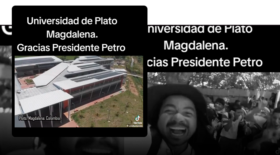 Un video de las instalaciones de una institución educativa circula en TikTok y X con el texto superpuesto que hace una falsa asociación con el actual gobierno nacional: “Universidad de Plato Magdalena. Gracias Presidente Petro” (sic).
