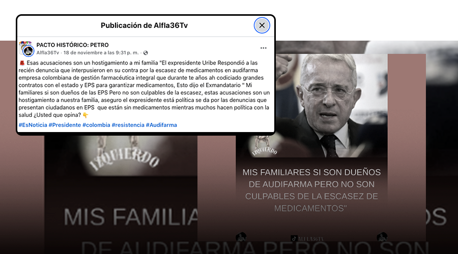Las publicaciones en redes, cabe resaltar, no mencionan cuándo ni dónde supuestamente Uribe habría reconocido que Audifarma era propiedad de su familia.