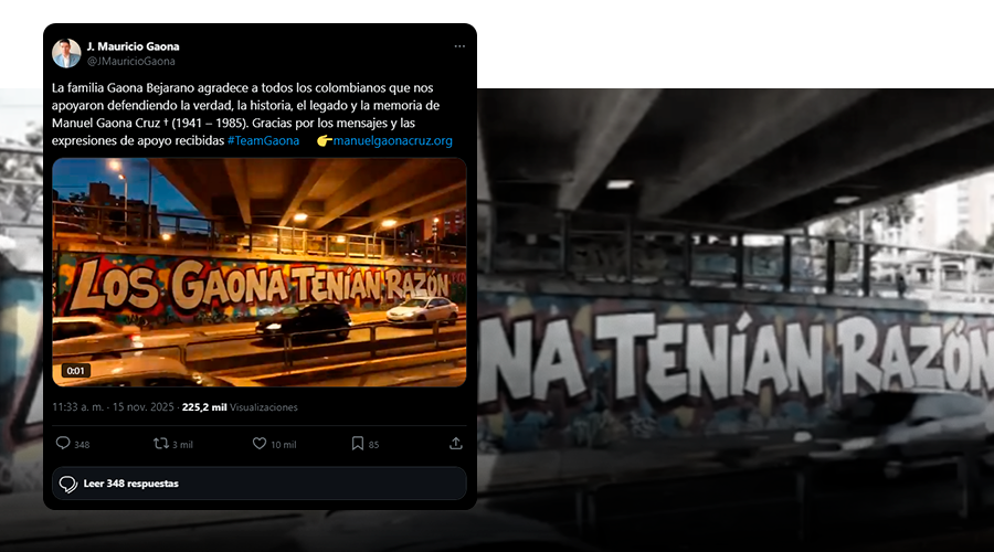En el trino, Gaona escribió: “La familia Gaona Bejarano agradece a todos los colombianos que nos apoyaron defendiendo la verdad, la historia, el legado y la memoria de Manuel Gaona Cruz † (1941 – 1985)”, refiriéndose a la discusión por las responsabilidades del Estado y de la guerrilla del M-19 en las muertes y desapariciones ocurridas en la toma del Palacio, que cumple 40 años.