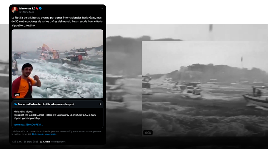 Un video con barcos en medio de una celebración se le atribuye falsamente en redes sociales a la Flotilla Global Sumud, el convoy que transporta asistencia humanitaria a la franja de Gaza mientras Israel bloquea ese enclave palestino.