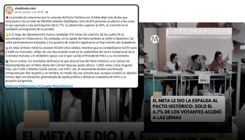 A día de hoy, la desinformación acumula más de 57.000 visualizaciones en X. Además, fue replicada en Facebook por usuarios y páginas como Pe Consue, Cómo Amaneció Medellin Cómo Amaneció y Miguel Tolosa.