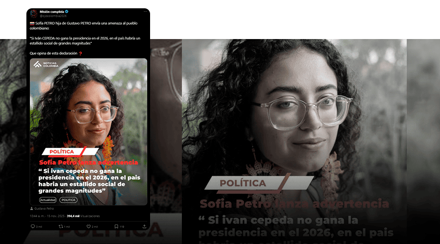 Una imagen de una niña con un mensaje de rechazo a las armas se está difundiendo en redes sociales desde hace dos meses. El senador Roy Barreras la atribuyó a un contexto falso.