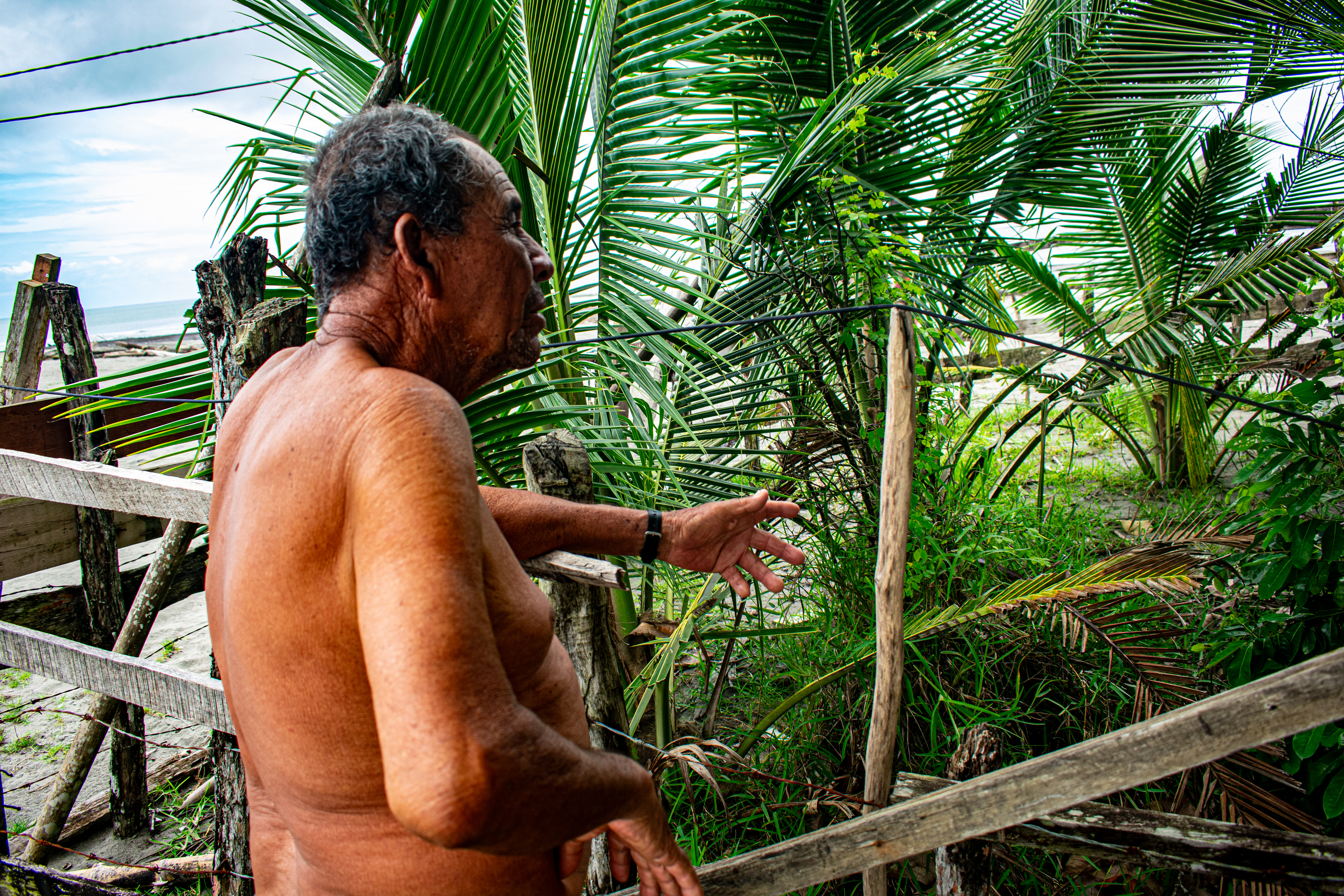 Hoy, a los 54 años, habita en El Cacao, una pequeña finca ubicada a 30 minutos de camino, internándose en la vegetación a pie desde Mulatos, su pueblo natal. En el predio, varios afectados por la erosión han levantado un modesto caserío desde el que no se alcanza a ver el mar con el que convivieron toda la vida.
