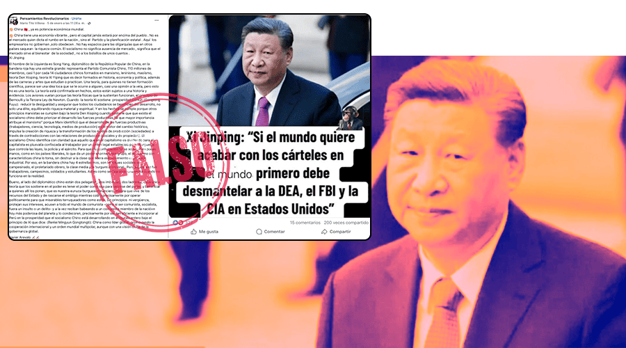 La falsa atribución al mandatario chino sobre desmantelar la DEA, la CIA y el FBI recircula con un pequeño cambio frente a la versión que desmentimos en 2025, que se centraba en México.