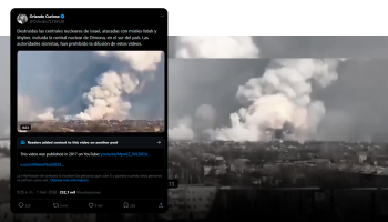La foto falsa circula en internet desde el 28 de febrero, después de los bombardeos de Israel y Estados Unidos a Irán, en los que murió Ali Khamenei. El montaje fue difundido en X por las cuentas Misión cumplida (@ojocolombia2026) y By Viral 24 (@ByViral24), las cuales hemos chequeado en varias ocasiones por desinformar (1 y 2).