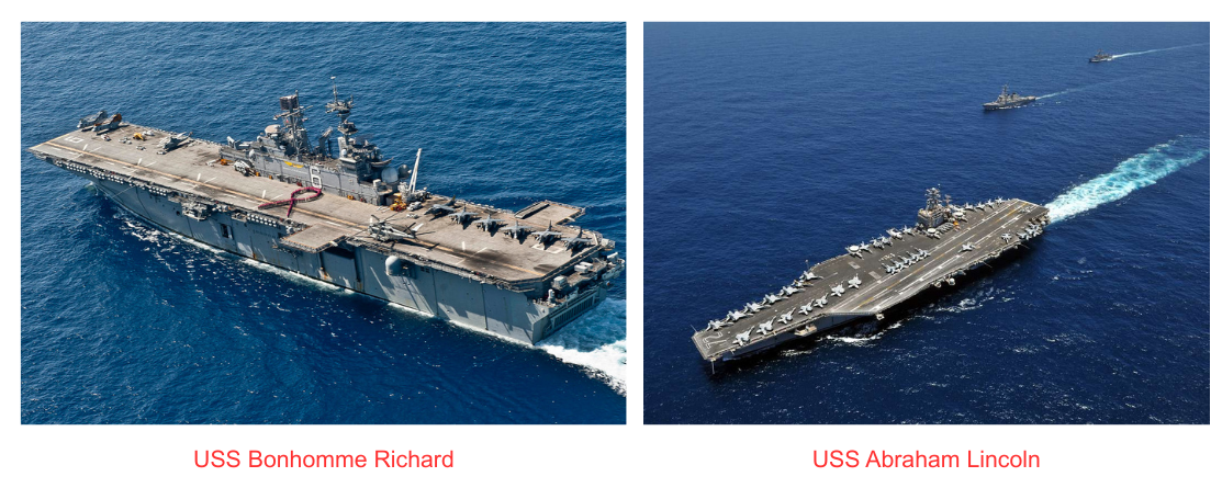 De igual manera, comparamos fotografía del USS Bonhomme Richard y el USS Abraham Lincoln. A simple vista, se trata de dos buques distintos.